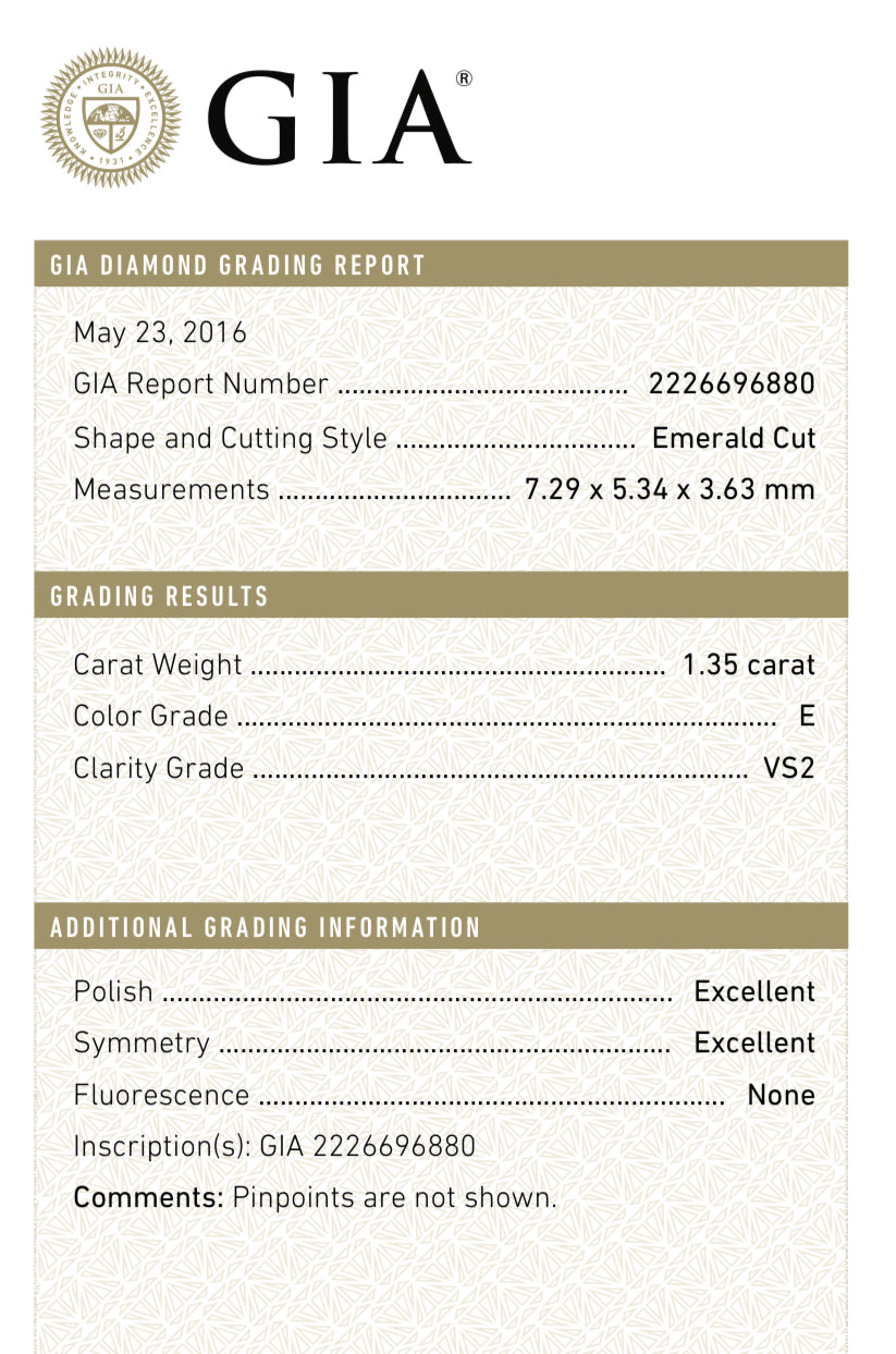 1.35 Natural emerald cut Diamond , Color E , Clarity VS2 GIA 2226696880