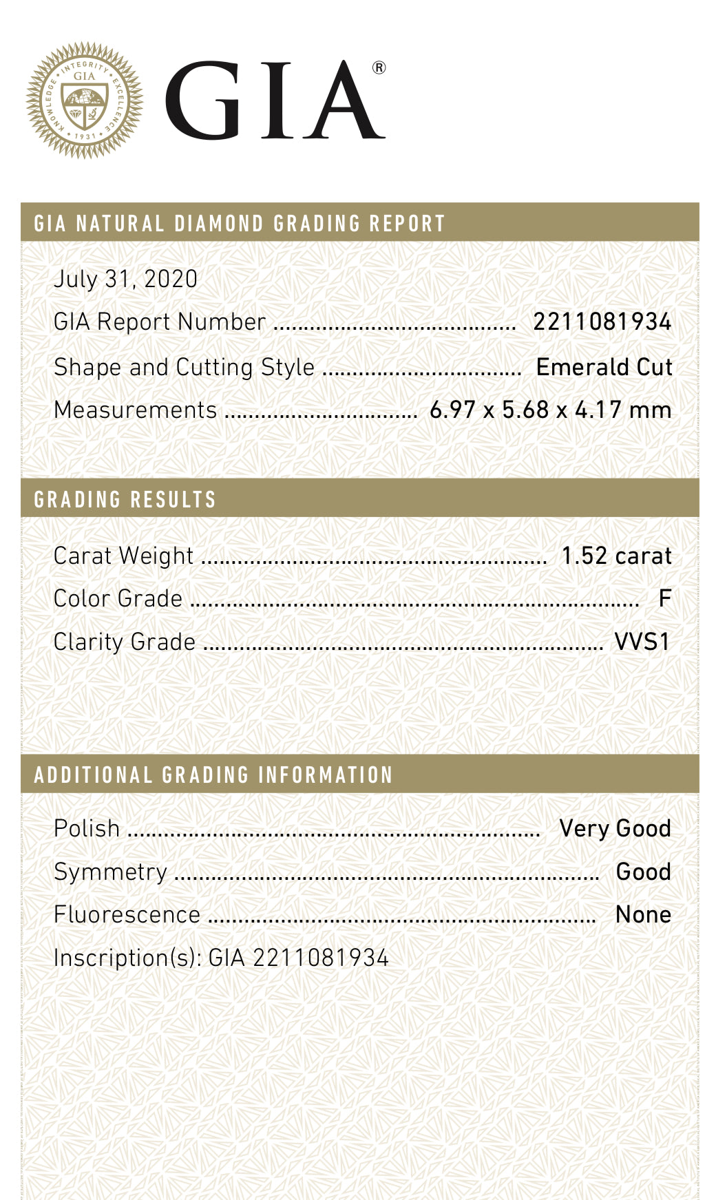 1.52 Carat Emerald Cut Diamond F , VVS1 GIA CERTIFICATE 2211081934 1.50 Carat Asscher Cut Diamond G , S1 , GIA CERTIFICATE 12744461 Total PRICE $15,890.00 / DEPOSITED REQUESTED