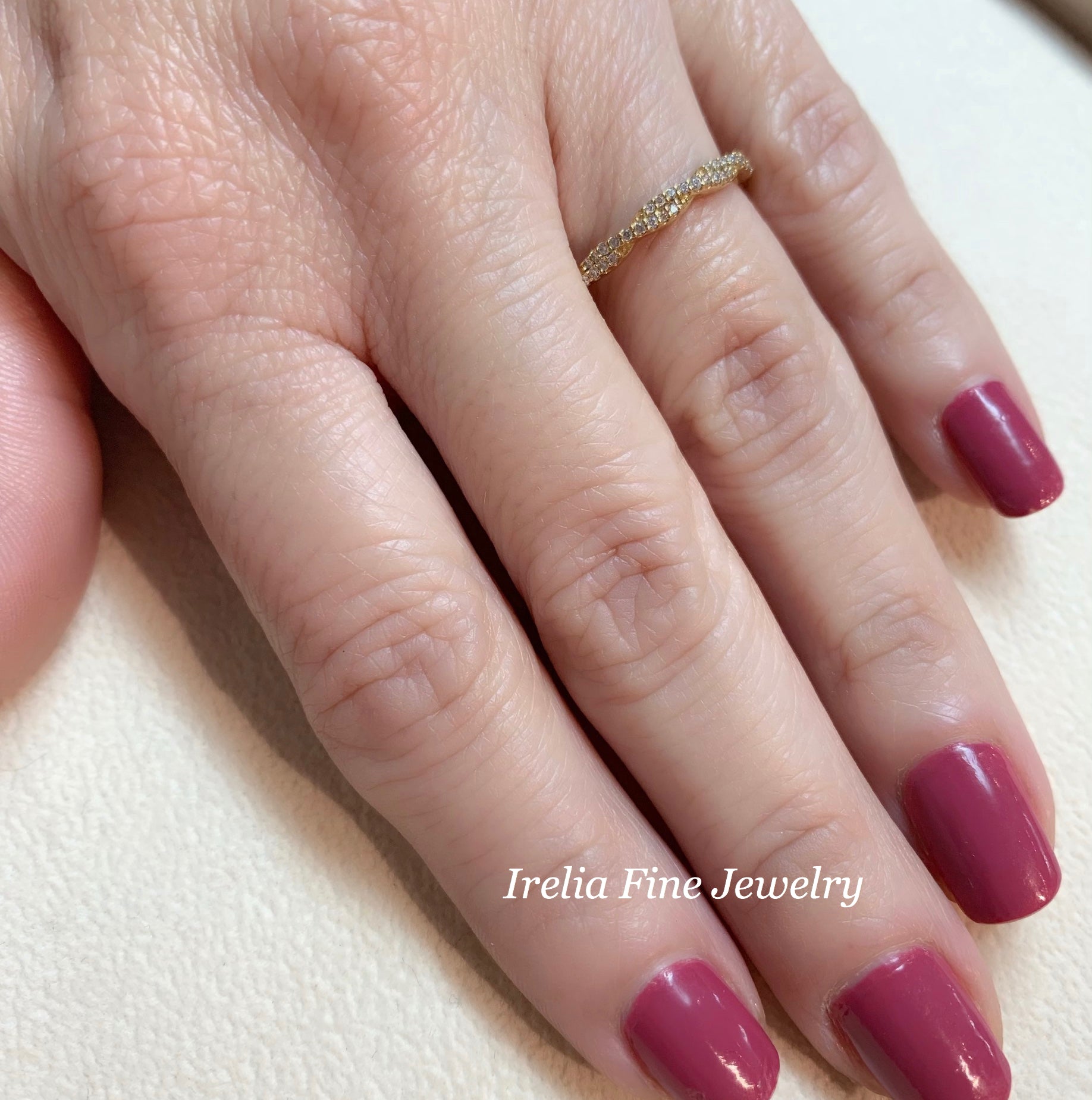 Beautiful, twisted diamond band, can also be used as a stackable ring. It has a total of 55 diamonds measuring .80 to 1.00 mm round. The Diamond Color is G-H with SI1 Clarity.
