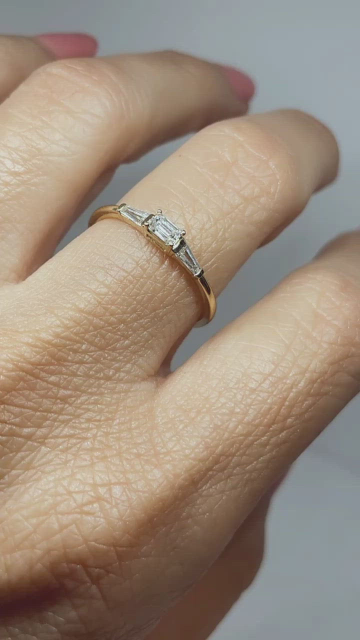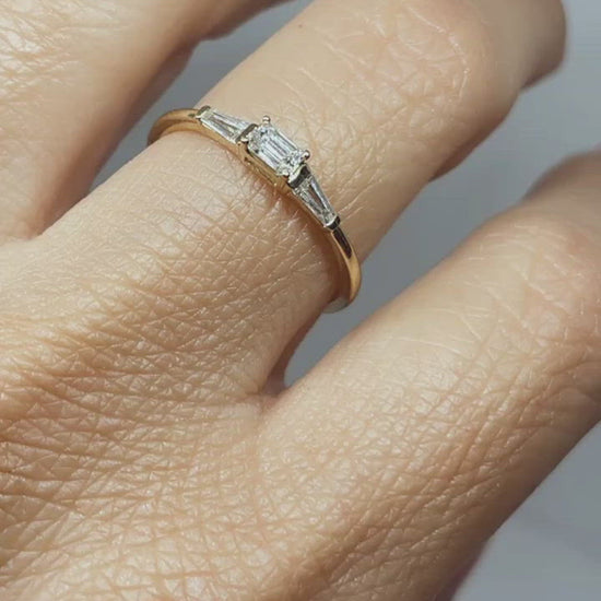 Beautiful 14k Yellow Gold 3 Stone Emerald Cut Natural Diamond Stackable