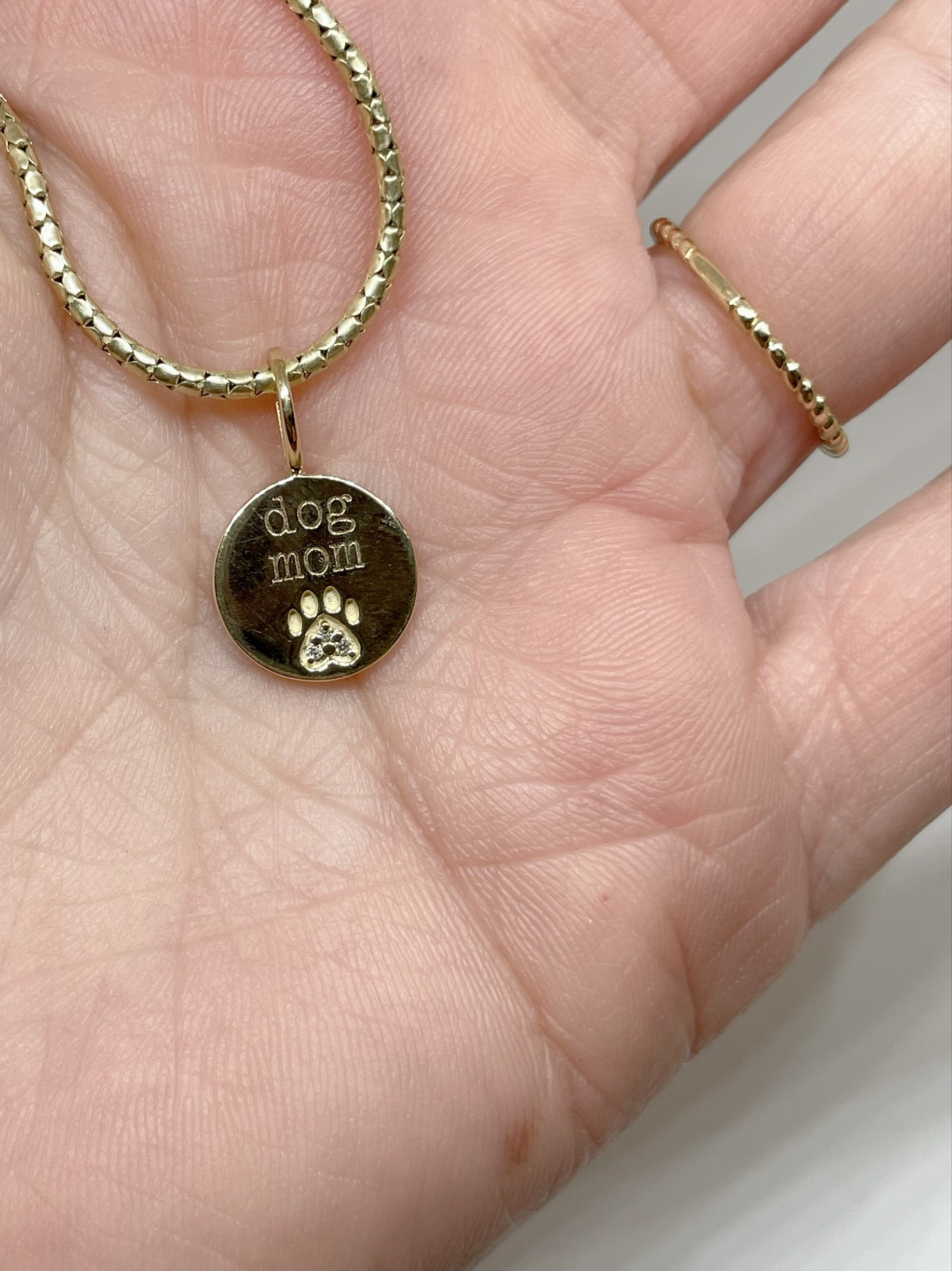 14K Yellow Gold Dog Mom Paw Pendant , .01 carat natural Diamonds