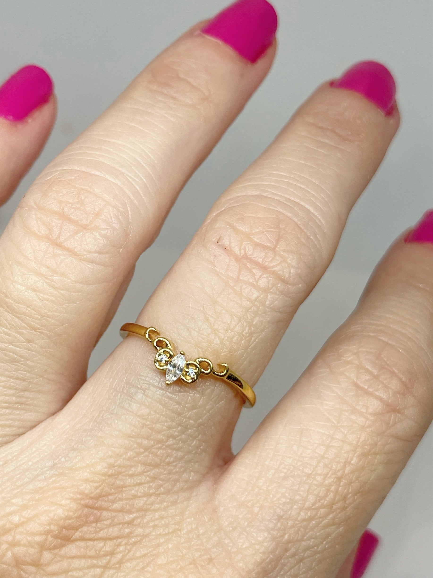 This is a delicate contoured band with .07 ct in Diamonds, ban can be created with either Lab or Natural Diamond, it comes set with qty 1 marquise size 4 x 2 mm and qty 2 round 1 mm diamonds.