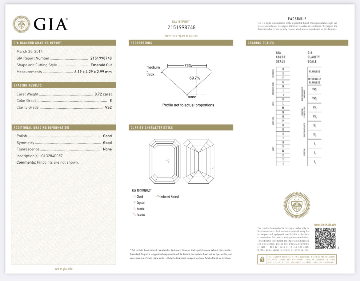 .72 Carat Emerald Cut Diamond E, VS2 , GIA CERTIFICATE 2151998748