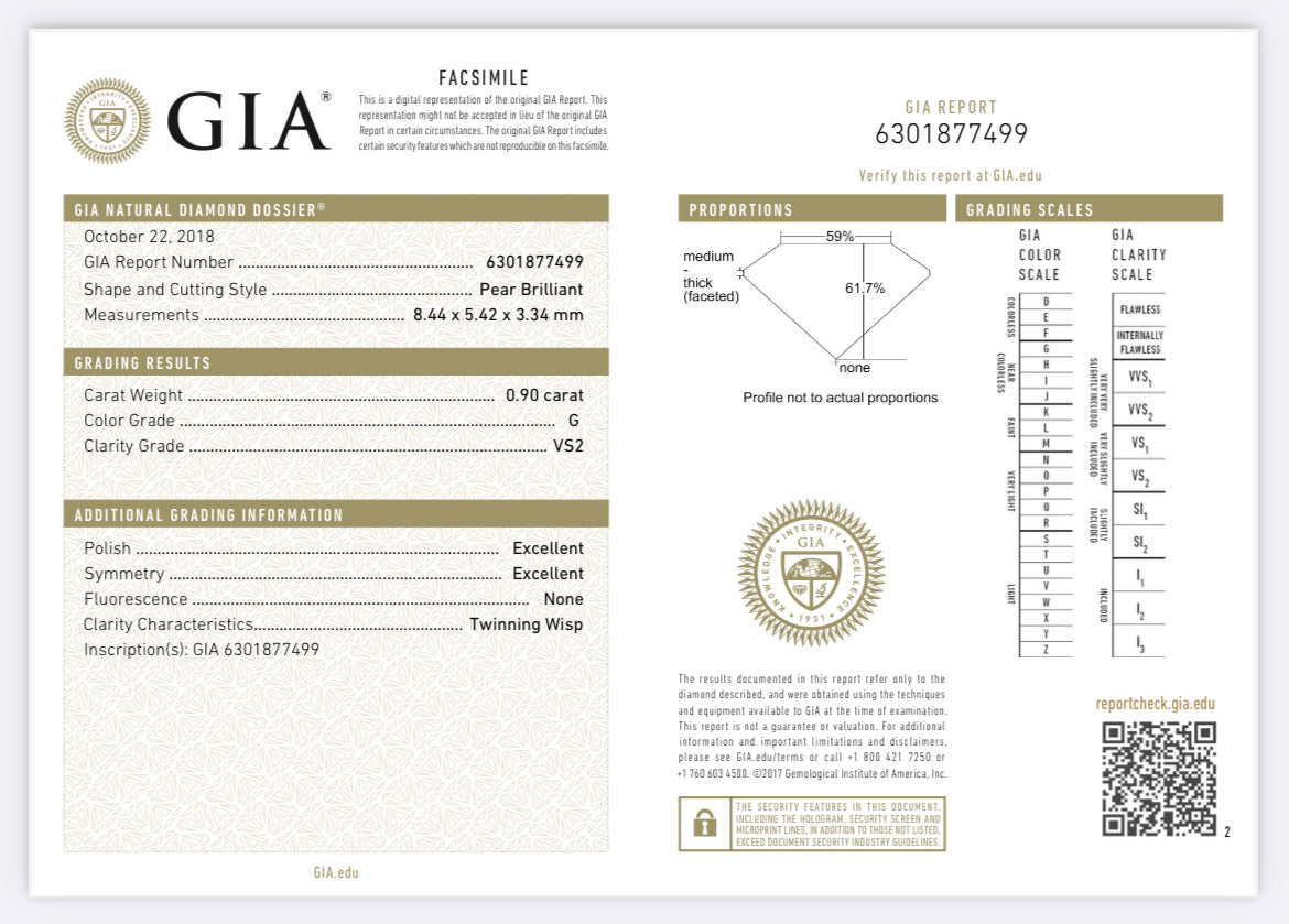 .90 Carat Pear Shape Diamond G , VS2 , GIA Certified 6301877499