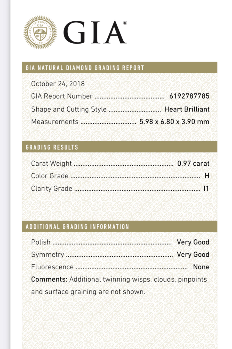 .97 carat Natural Heart Diamond , Color H , Clarity I1- GIA 6192787785