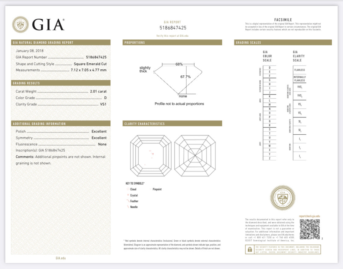 2.01 Carat Asscher Cut Diamond D , VS1 , GIA CERTIFICATE 5186847426 Total PRICE $33,478.00/ DEPOSITED REQUESTED